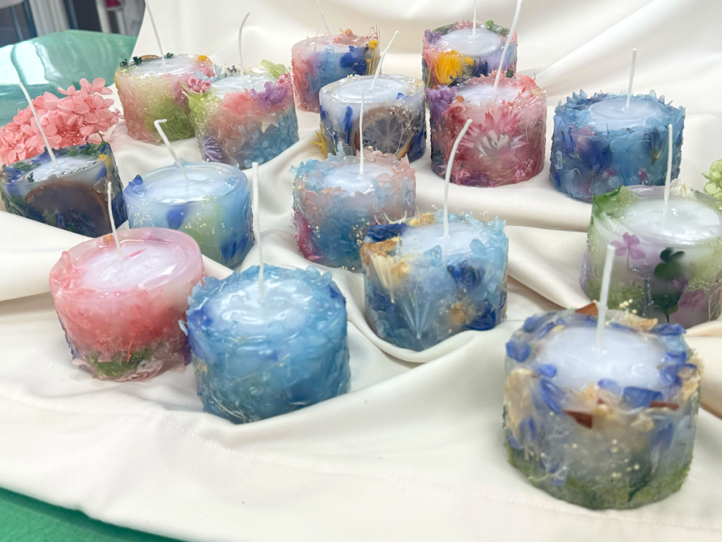 ボタニカルキャンドルでは、たくさんのお花の中から好きなものを選び、それぞれの個性が光る、世界に一つだけのキャンドルを完成させることができました。