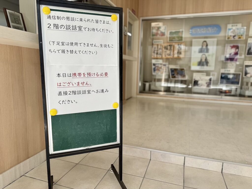 先生・生徒・保護者による三者懇談が始まりました。後期に向けて履修状況の確認や進路、学校生活について話し合い、生徒一人ひとりのこれからを一緒に考えています。