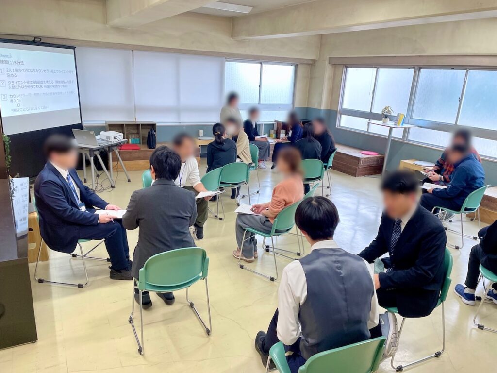 カウンセリング技術の中でも特に重要とされる「受容」について、傾聴と共感を意識して実践できるようになることを目標に、講師のご指導のもとで訓練を行いました。